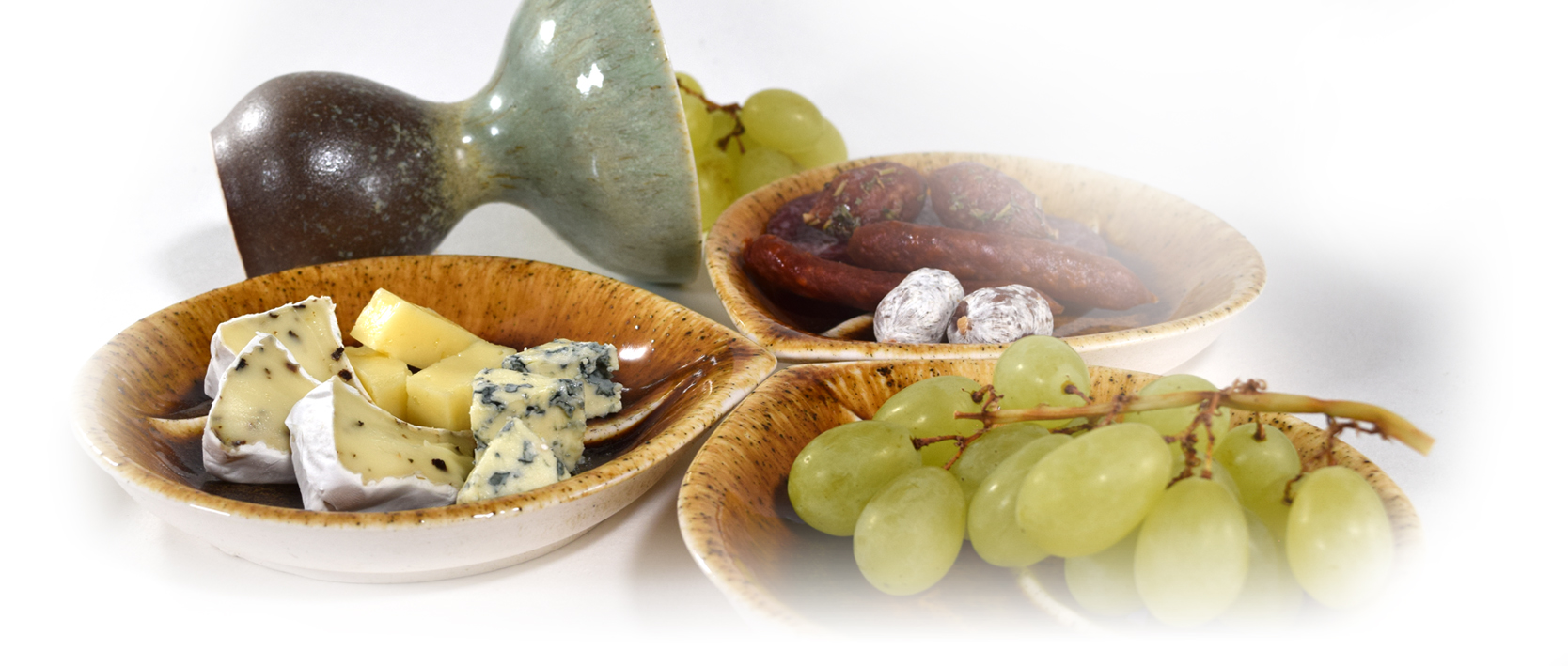 A szőlő és annak művelése, a borfogyasztás Bibliai eredetű foglalatosság, mely évezredek európai kultúráját határozza meg és szövi át. Hitünk ma sokféle megjelenésben ölt formát, de a természetben, a szőlőművelésben és a borban mindannyian megtaláljuk az isteni vezetést. A borporcelánok közt megjelenő állatfigurák túl a természeti inspiráción, mind Krisztus attribútumok, ahogyan a fehér szín, a mécses láng, és maga szőlő motívum minden formája.