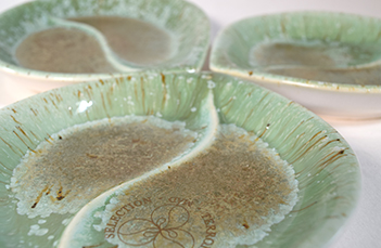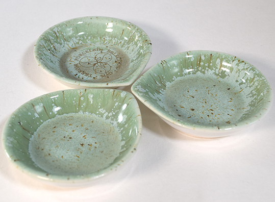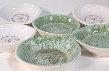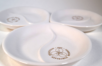 A borporcelán tárgyak színválasztását a föld és a szőlőszem párosa inspirálta. Egyes daraboknál megjelenik a tiszta, a természet nemességét jelentő fehér porcelán, illetve az ezt támogató arany festés, illetve matrica. Rajzolatban a kettévágott szőlőszem vezette a ceruzát, a héj, a hús és a mag utal a szellemi hármasságra.